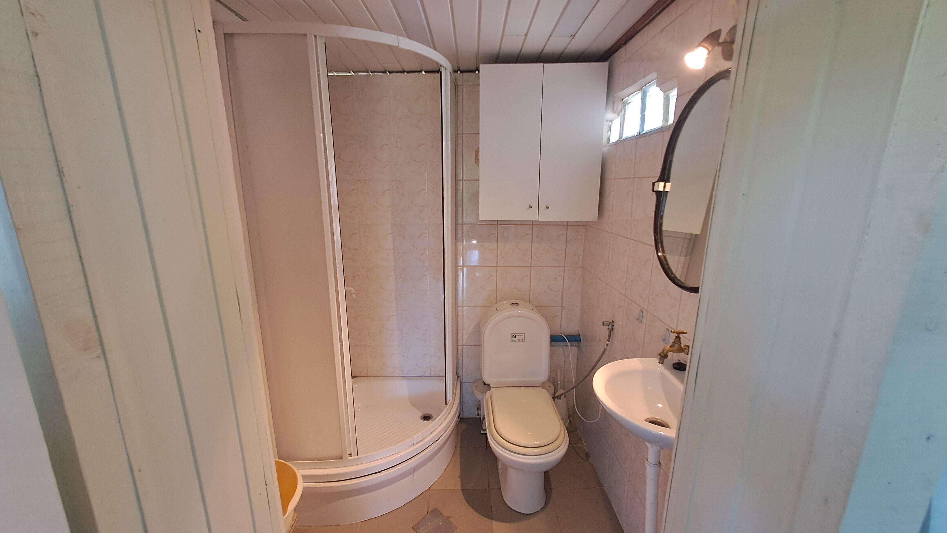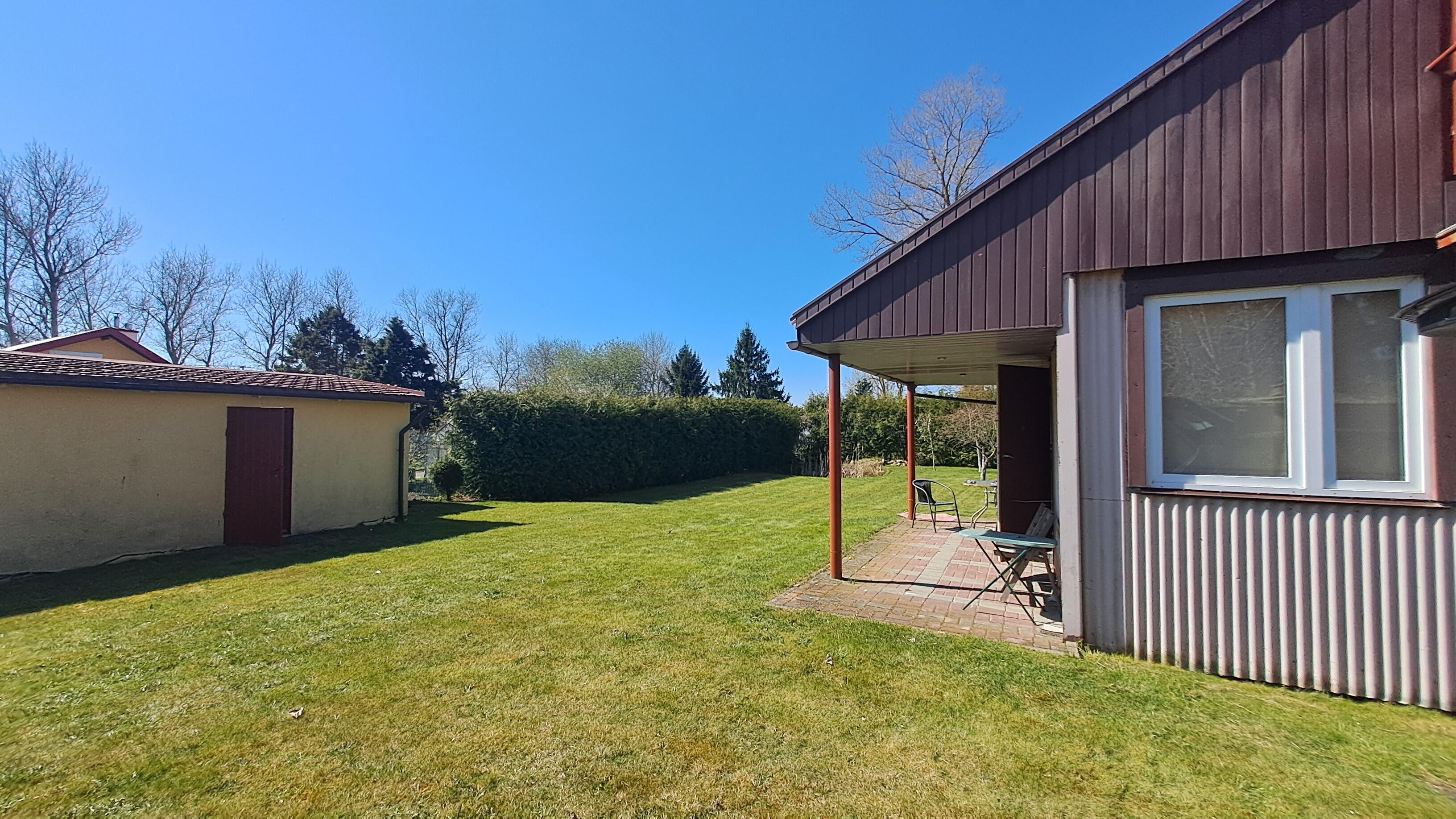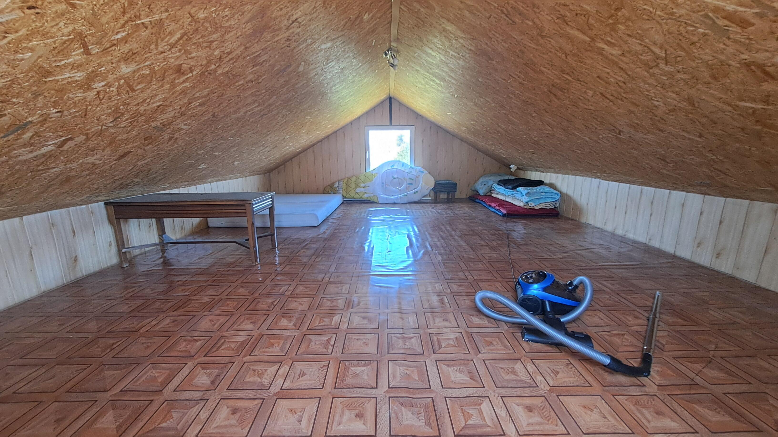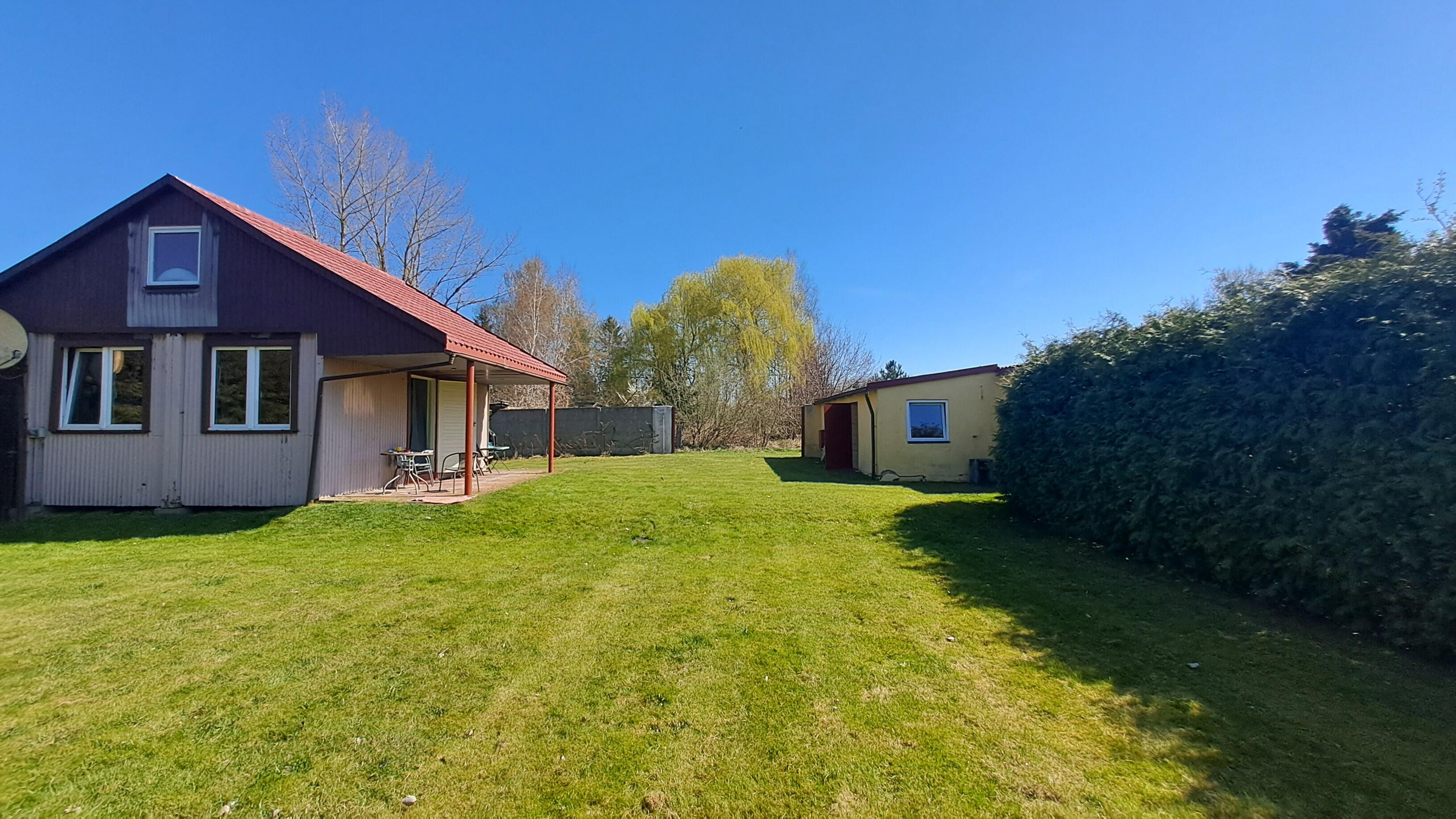 - Pierwszy budynek to przytulny salon z aneksem kuchennym, sypialnia i łazienka oraz poddasze z możliwością spania dla 4 osób. Za budynkiem mały warsztat - pomieszczenie gospodarcze.