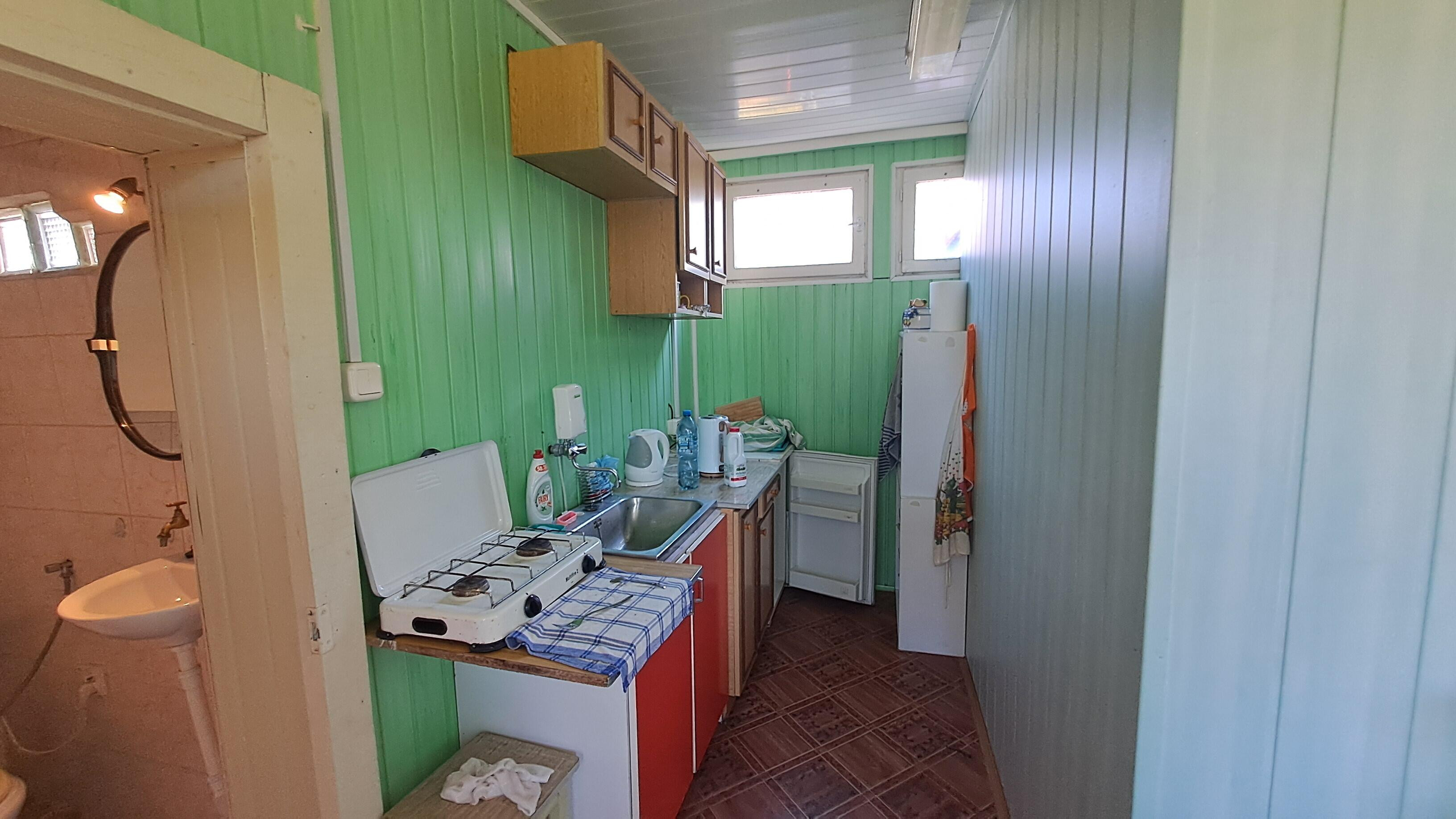 - Drugi budynek to sypialnia dla dwóch osób oraz mały salonik z aneksem kuchennym.